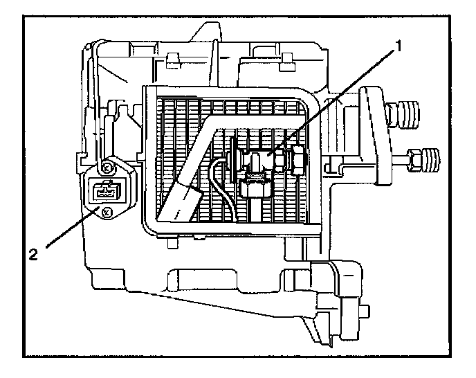 The expansion valve converts the high pressure liquid refrigerant sent from the receiver/driver to a low pressure liquid refrigerant by forcing it through a tiny port before sending it to the evaporator (2).