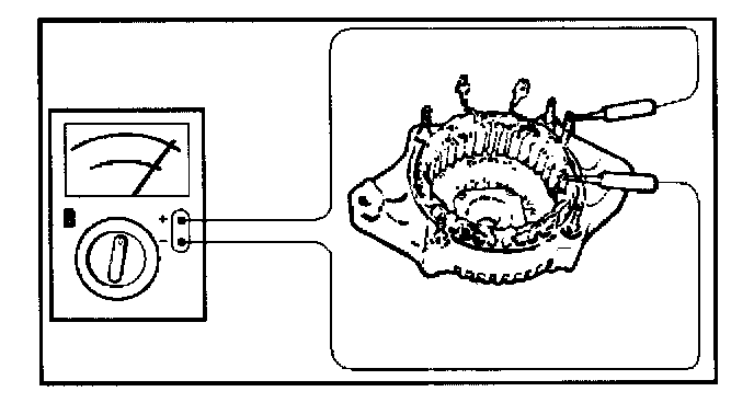 2. Measure insulation resistance between stator coil and core with a mega-ohmmeter. If less than standard, replace the coil.