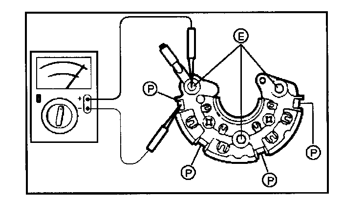 Change polarity, and make sure that there is continuity in one direction, and not in the reverse direction. In case of continuity in both directions, replace the rectifier assembly.