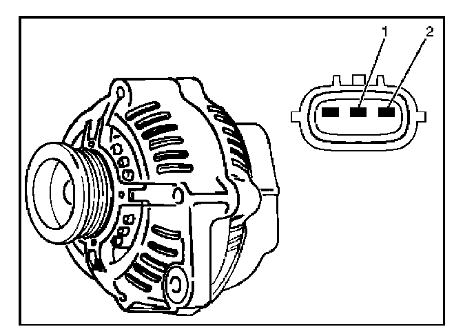 2. With the engine stopped, turn starter switch to "ON" and connect a voltmeter between connector terminal L (2) and ground or between terminal IG (1) and ground.