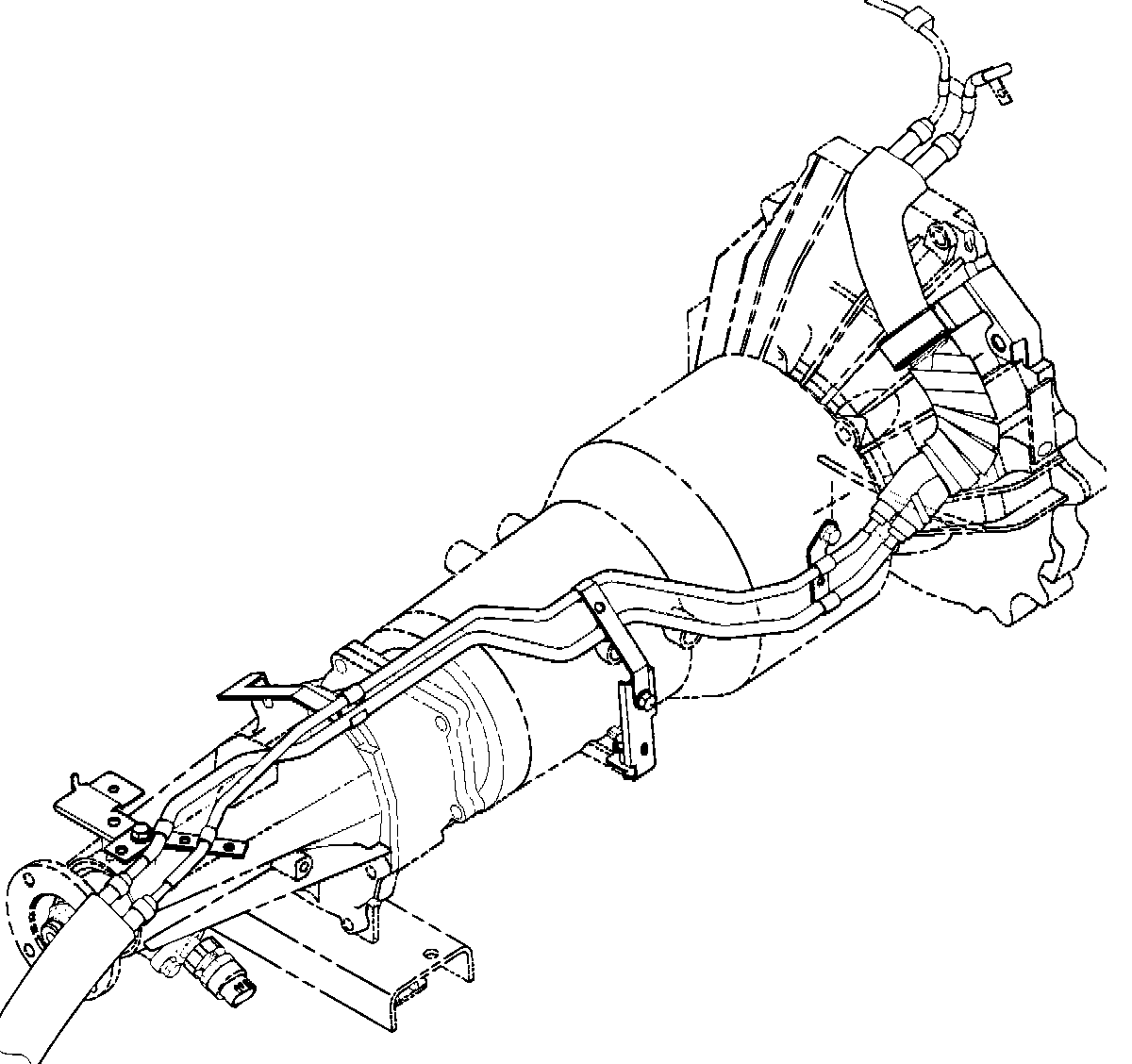 8. Connect transmission harness connectors to transmission, transfer, and right catalytic converter.
