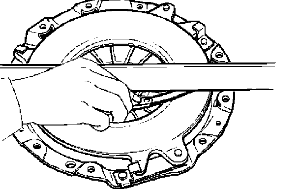 4. Mark the flywheel, clutch cover and pressure plate lug for alignment when installing.