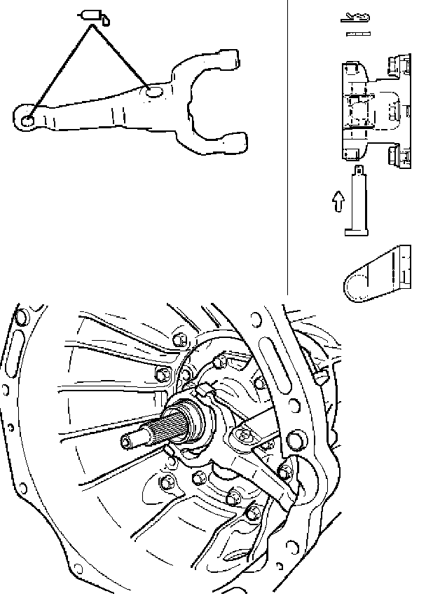 3. Visually check the surfaces of the shift fork making contact with the release bearing for excessive wear and damage.
