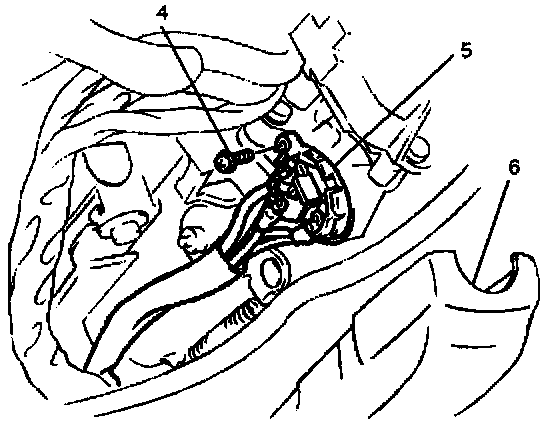 6. Disconnect the connector, remove the screw (4) and then remove the starter switch (5).