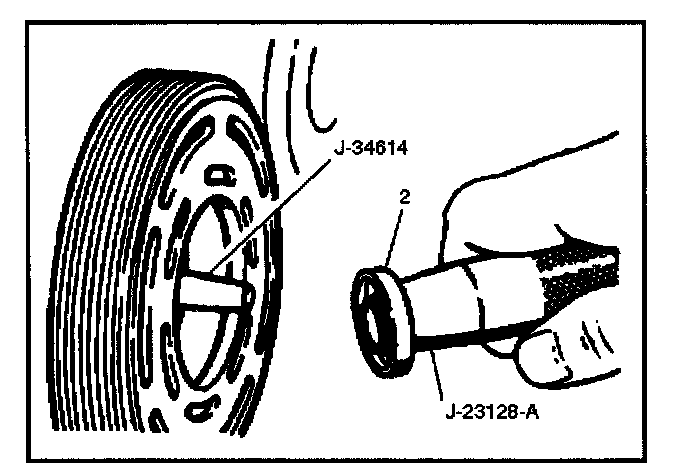 4. Install the new seal retainer ring with its flat side against the Seal, using Snap-Ring Pliers. Use the sleeve from O-ring installer J-33011 to press in on the seal retainer ring so that it snaps into its groove.