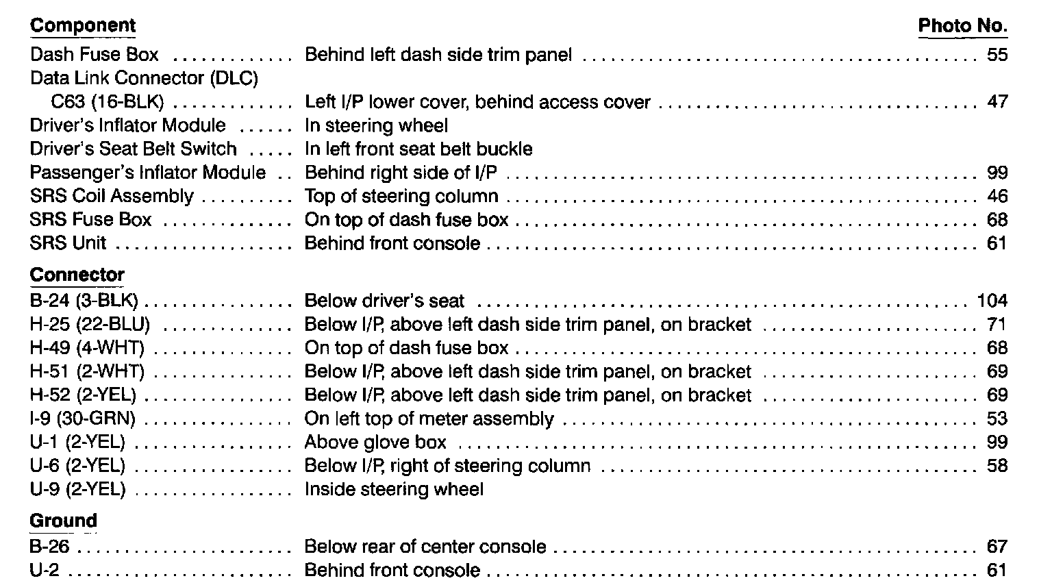 Supplemental Restraint System (SRS) Index: