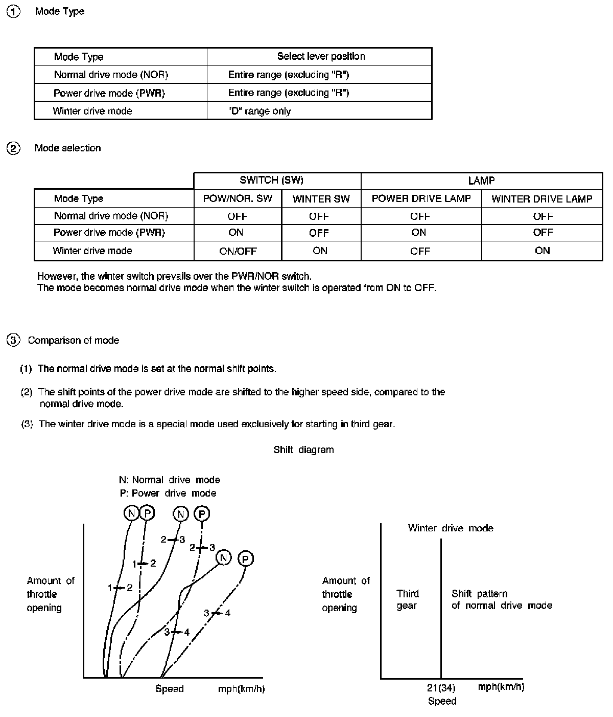 ^ Winter mode - Starts in 3rd gear to reduce slippage on ice or snow.