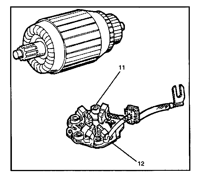 11. Raise a brush spring to detach brushes (4 pcs) from the commutator face and pull off the brush holder (12) and brush (11).