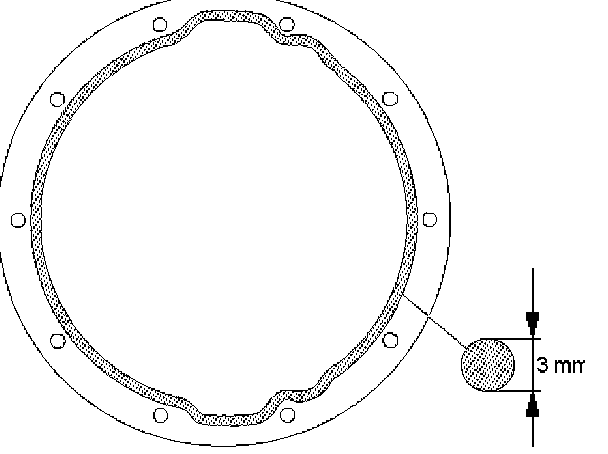 1. Clean the contact surfaces of the axle and differential carrier. As shown in the drawing, apply Three Bond TB1215 or equivalent then install differential assembly.