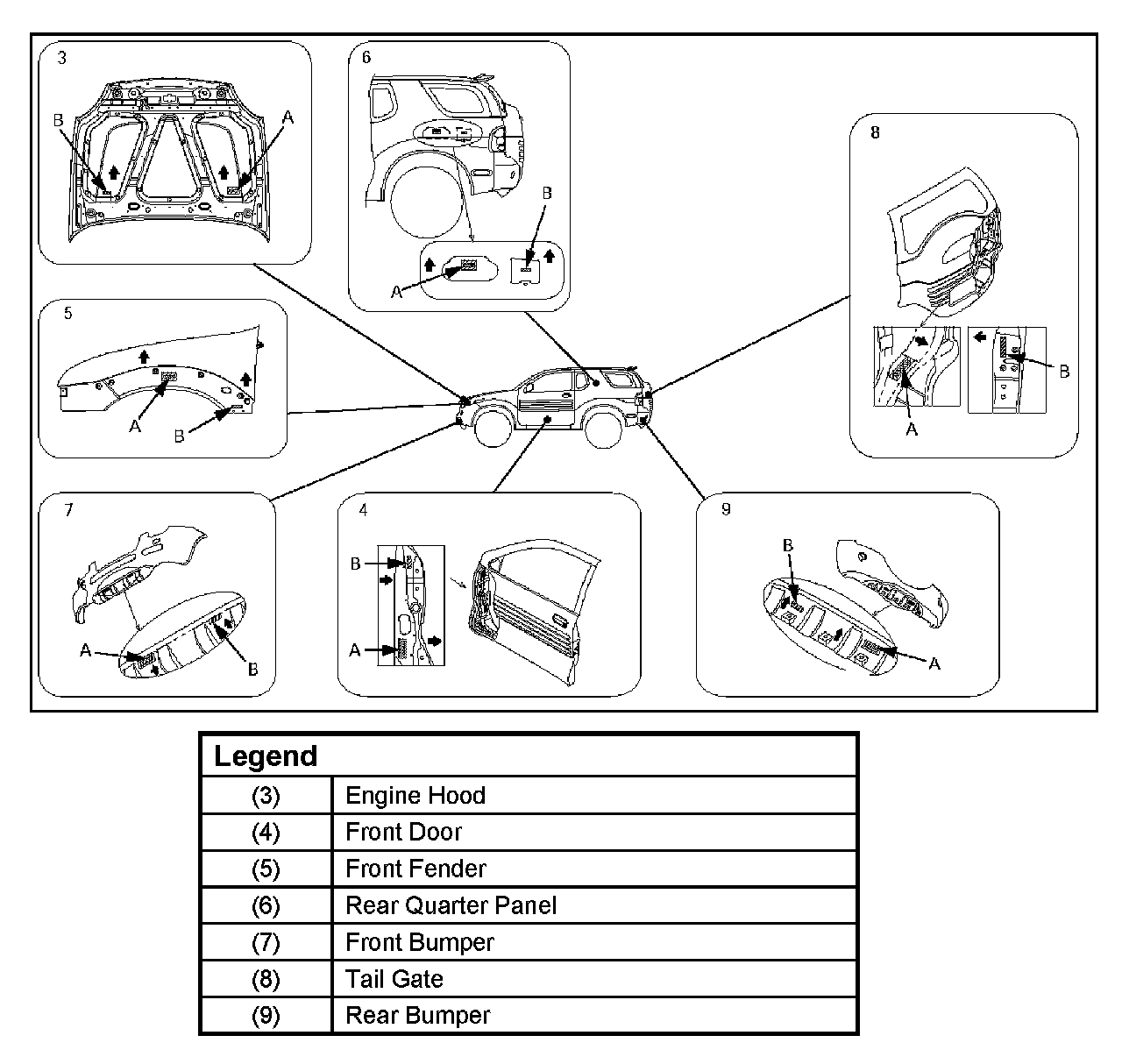 Do not peel off the masking tape until completion of paint work when replacing these parts, as the tape is affixed on the label attached to service parts for body of the antitheft component.