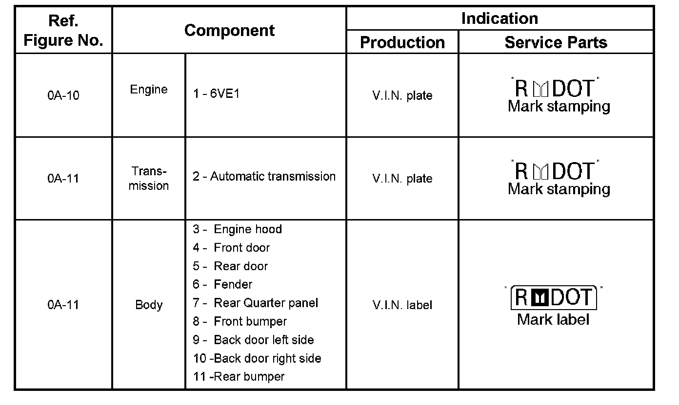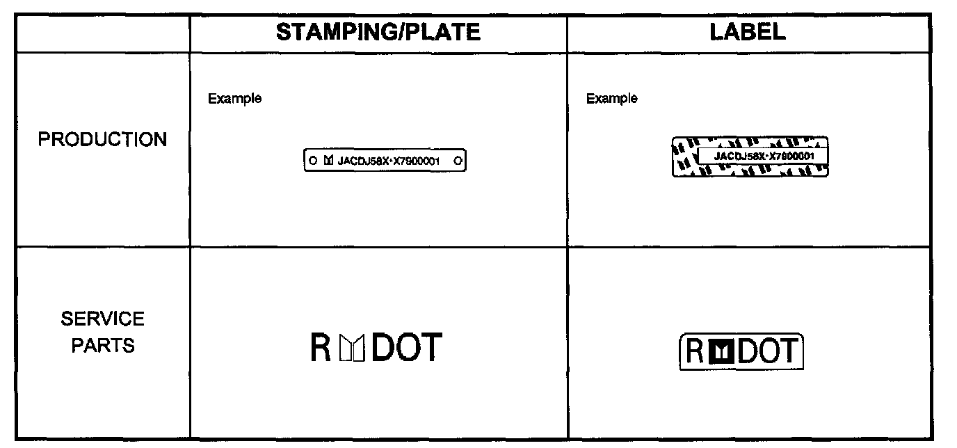 The 11 major components listed will be marked with 17 digit V.I.N. At the stage of production. In addition its service parts will be marked with manufacturers trade mark "R" mark and "DOT" mark.