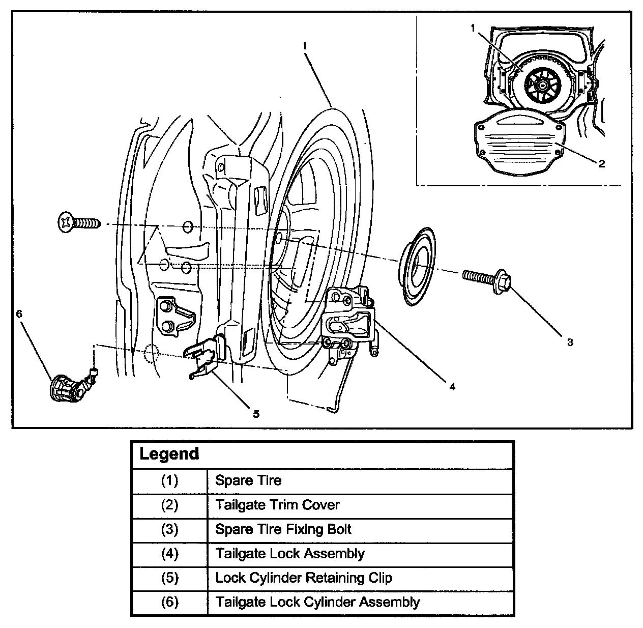 Tailgate Lock, Lock Cylinder And Associated Parts: