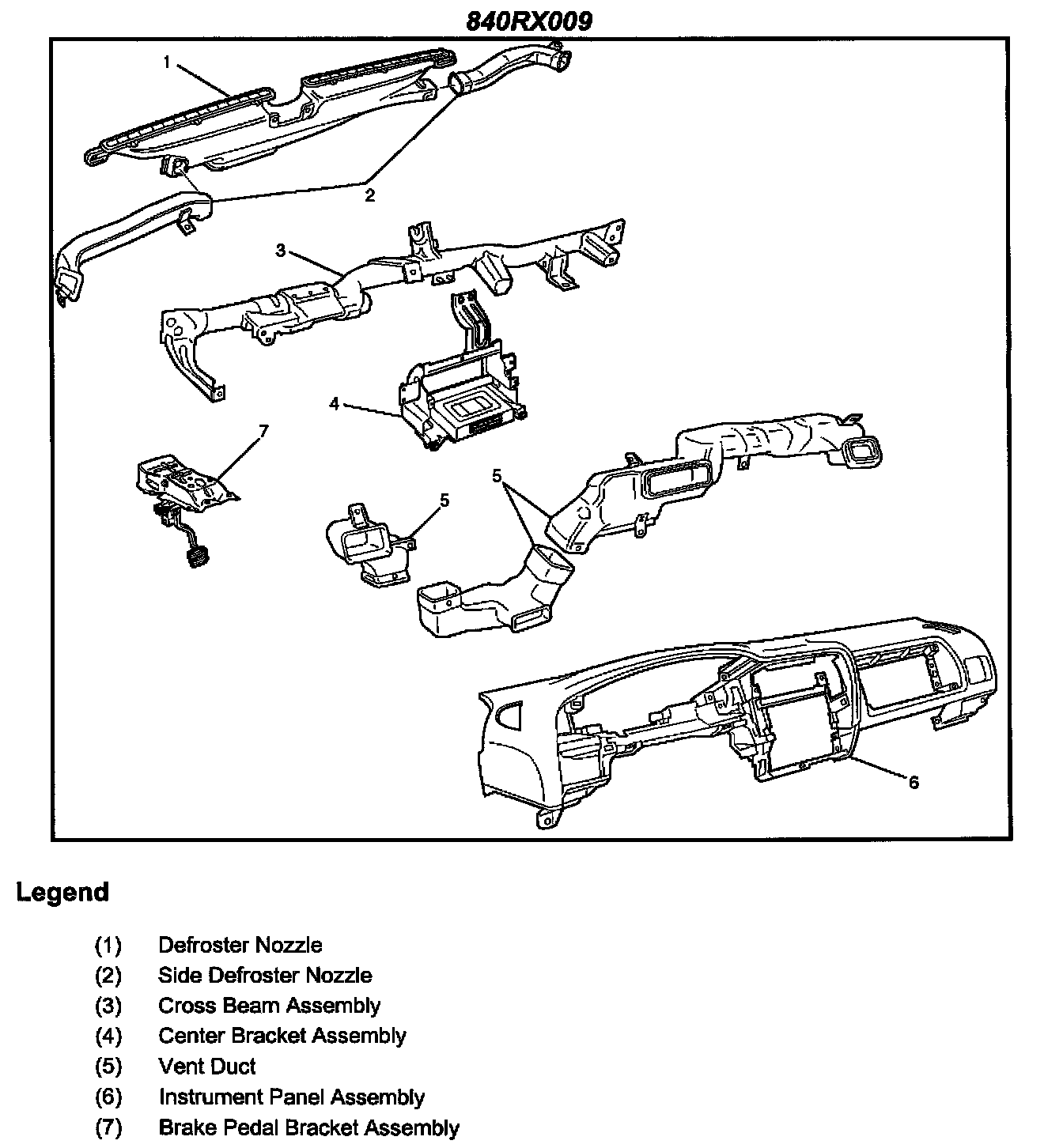 Defroster Nozzle, Ventilation Duct Associated Parts: