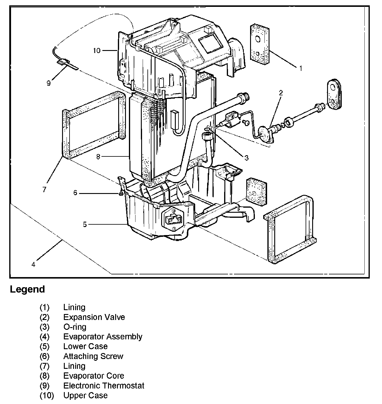 ELECTRONIC THERMOSTAT, EVAPORATOR CORE AND/OR EXPANSION VALVEElectronic Thermostat, Evaporator Core and/or Expansion Valve - Disassembled View: