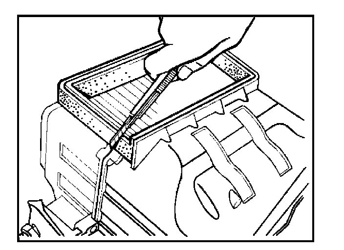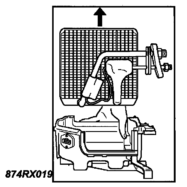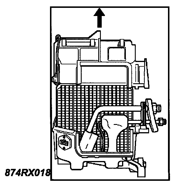 9. Apply an adhesive to the parting face of the lining when assembling the evaporator assembly.