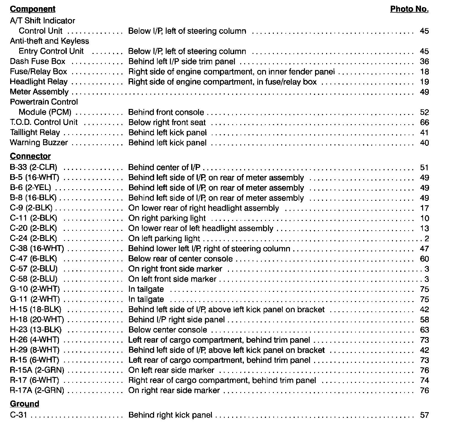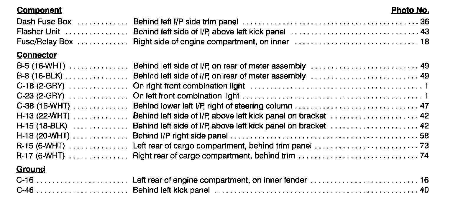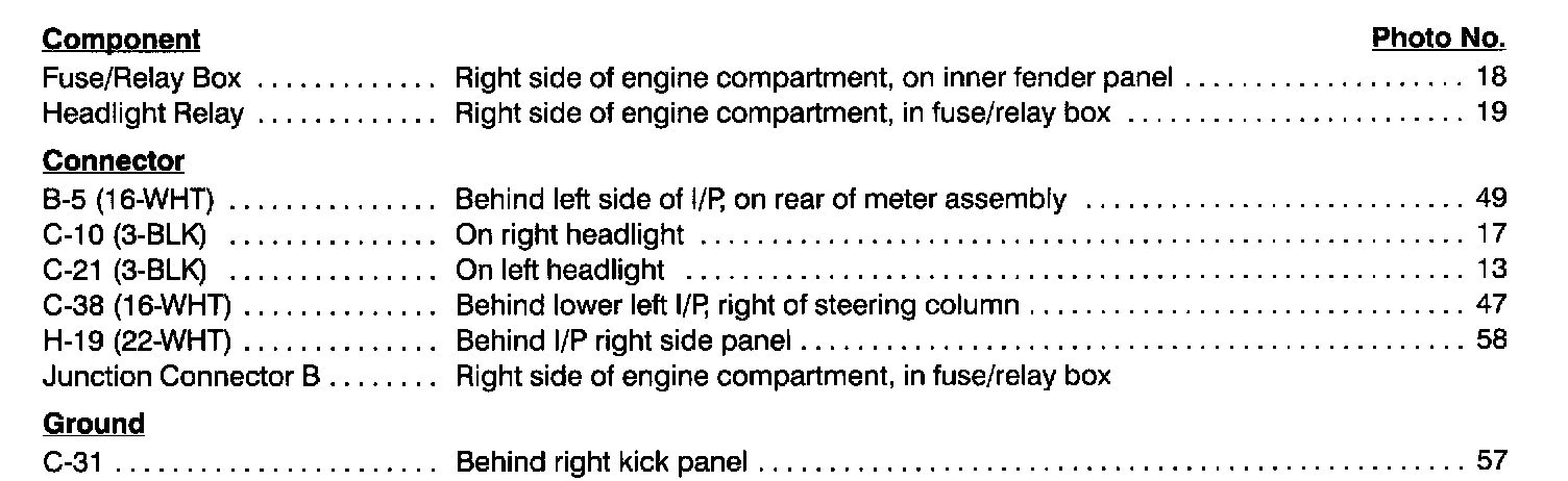 Turn & Hazard Lights Index: