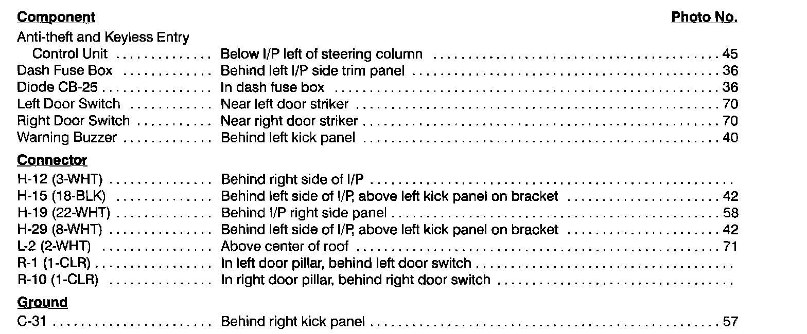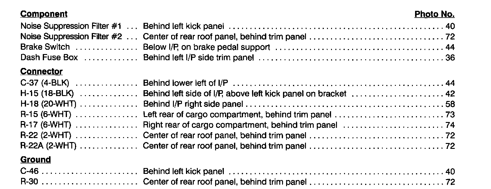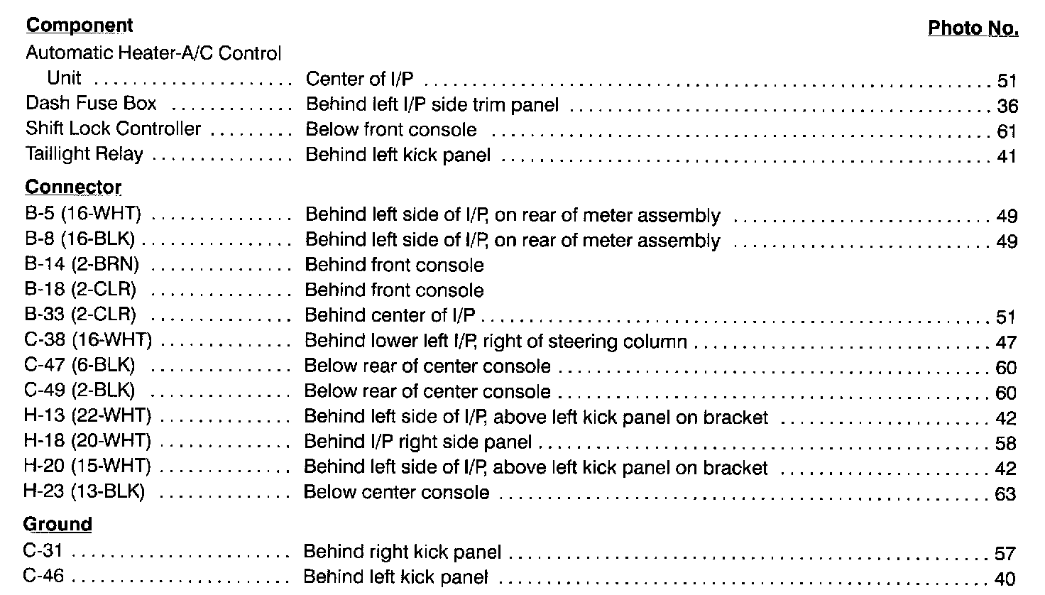 Dome & Map Lights Index: