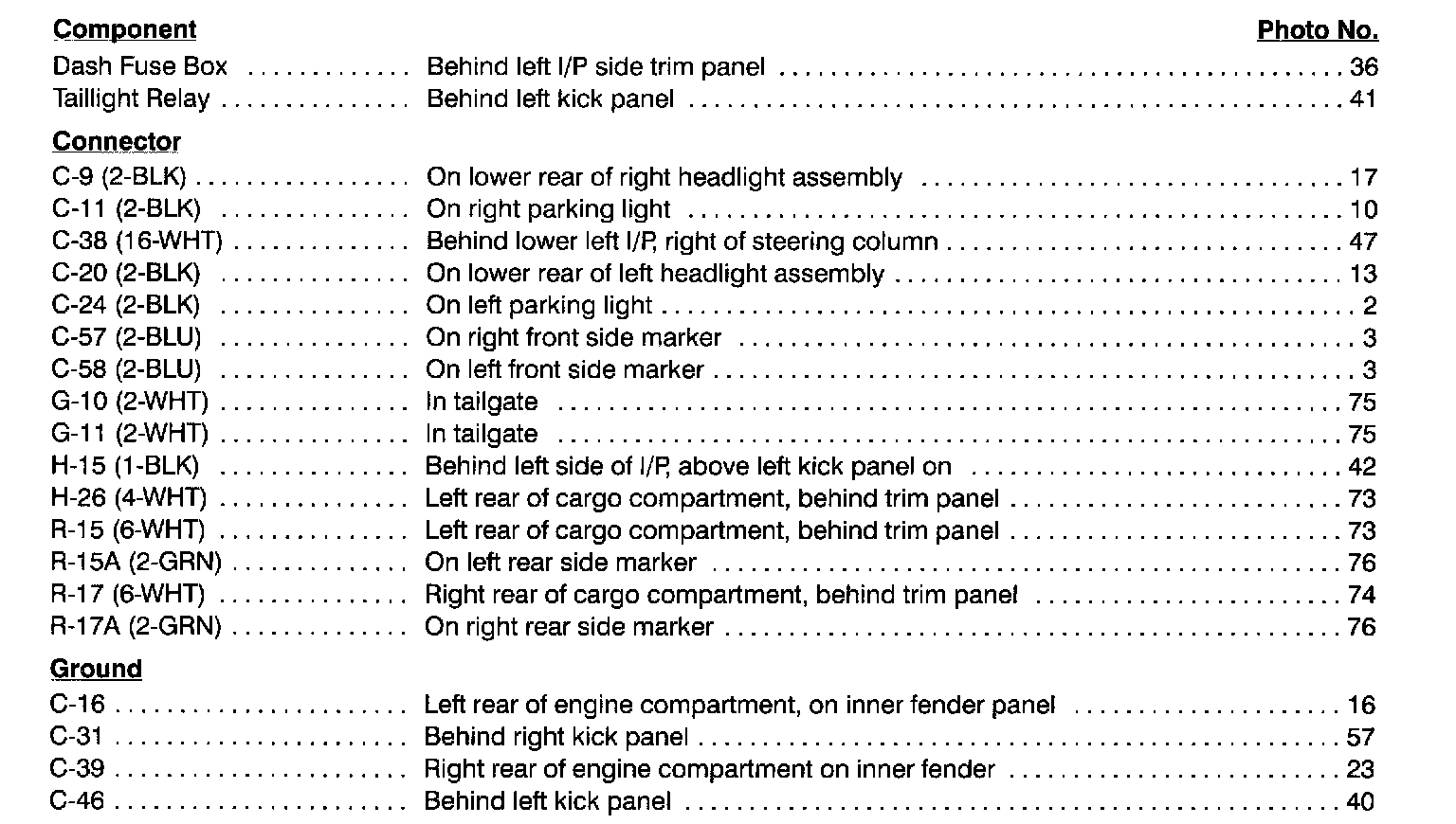 Park, Tail, & License Lights Index: