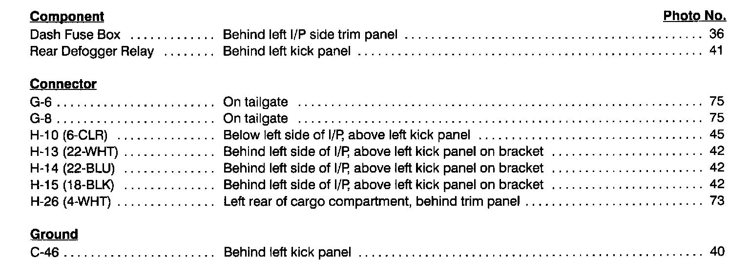 Rear Defogger Index: