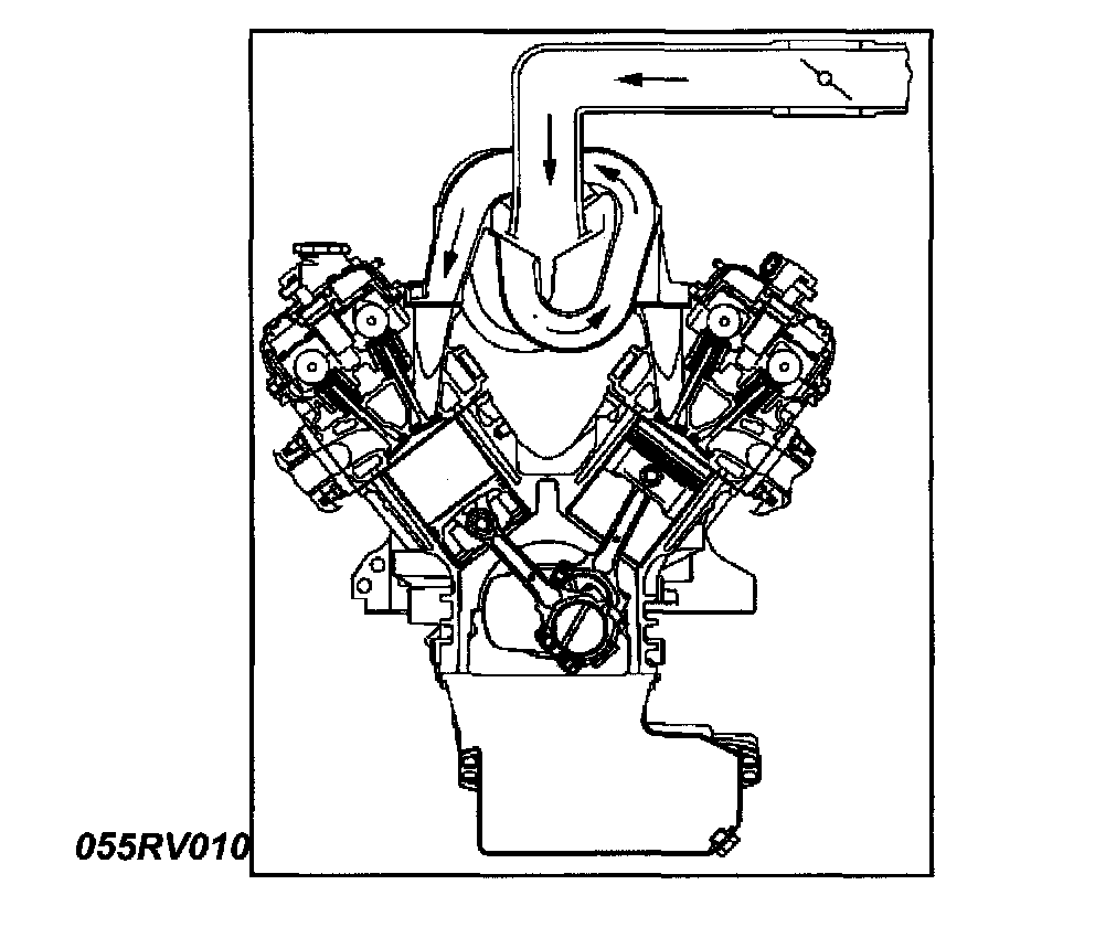 The air induction system filters contaminants from the outside air, and directs the progress of the air as it is drawn into the engine. A remote-mounted air cleaner prevents dirt and debris in the air from entering the engine. The air duct assembly routes filtered air to the throttle body. Air enters the engine by to following steps: