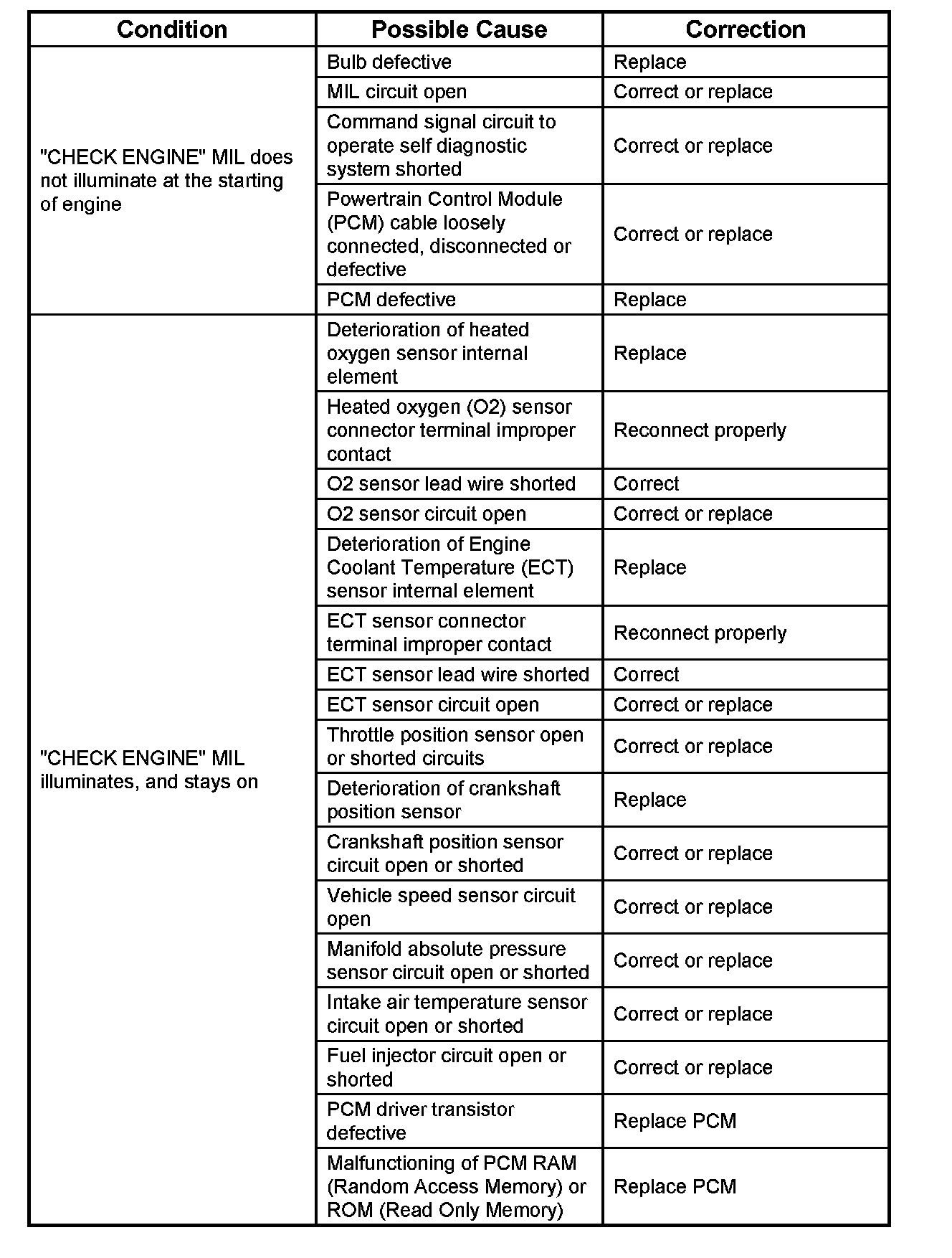 Malfunction Indicator Lamp: Testing and Inspection