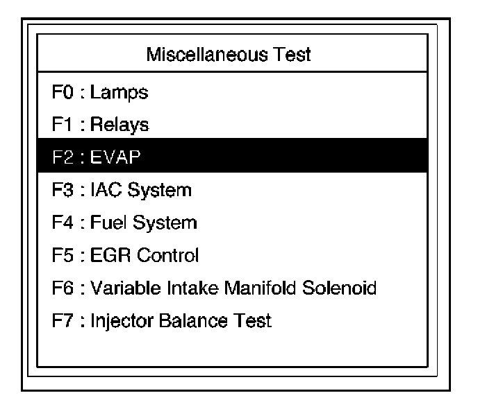 4. Select F2: EVAP Test in the Miscellaneous Test.
