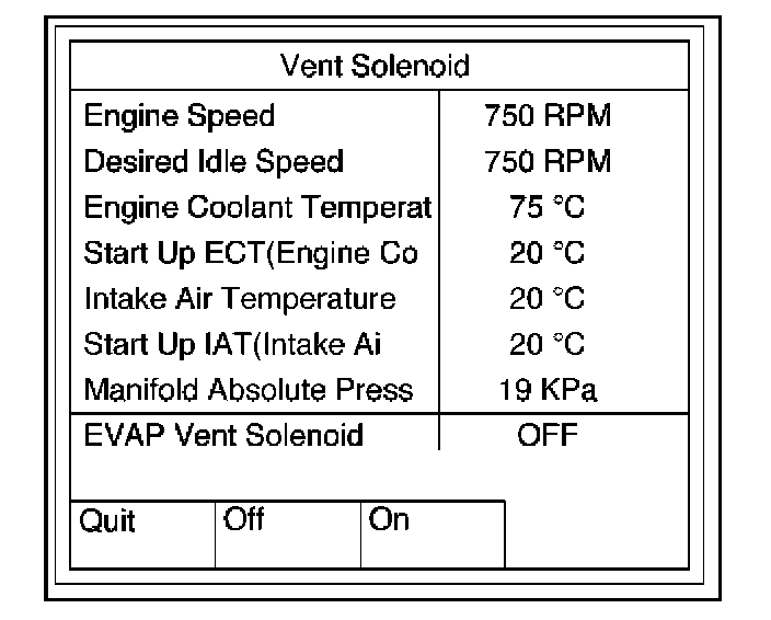 9. Select F1 :Vent Solenoid.