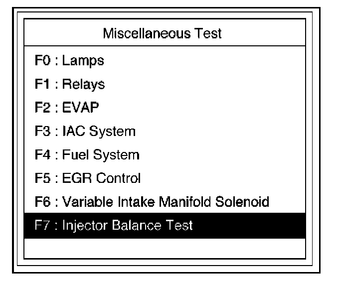 4. Select F7: Injector Balance Test in the Miscellaneous Test.
