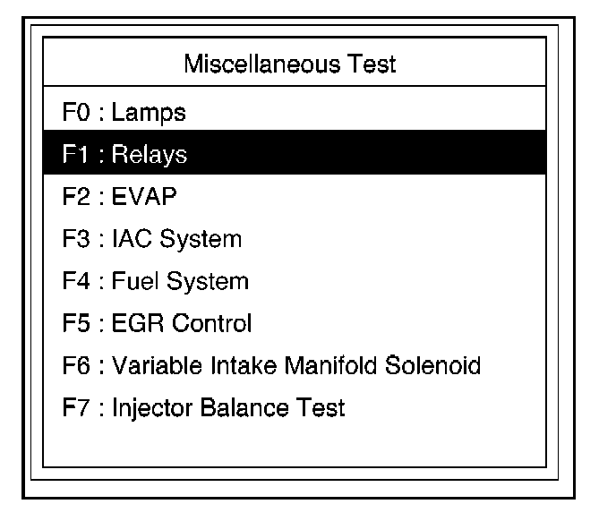 4. Select F1: Relay Test in the Miscellaneous Test.
