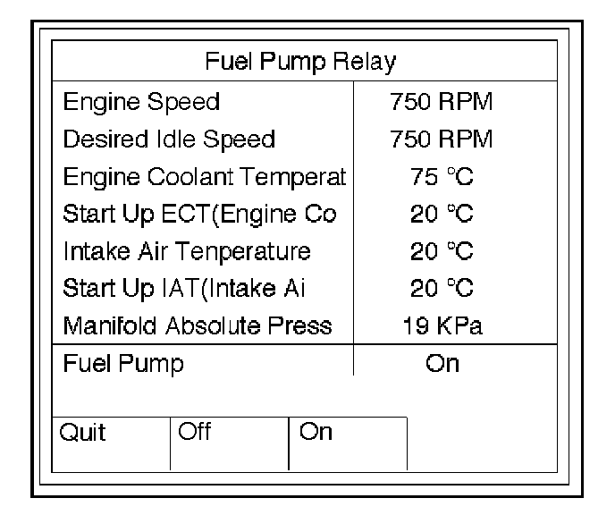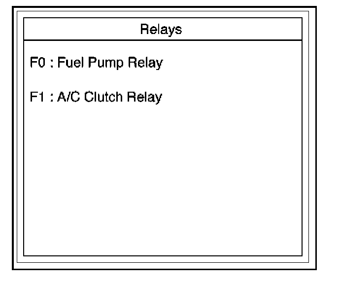This test is conducted to check Fuel Pump Relay and A/C Clutch for proper operation.Tech 2 must be used for this test.