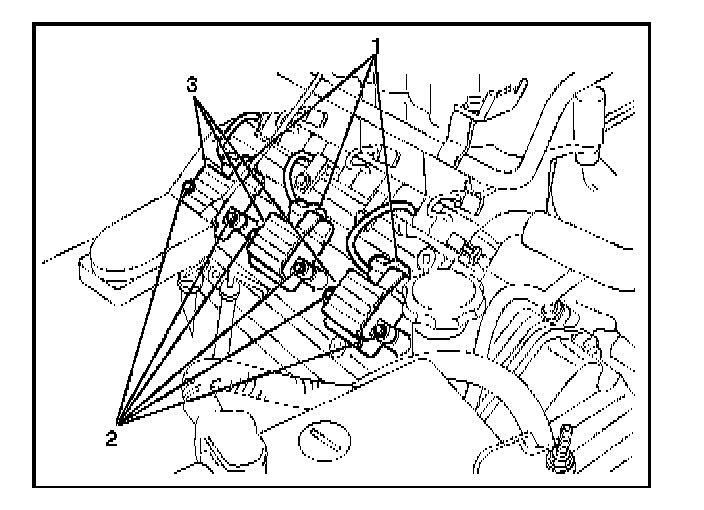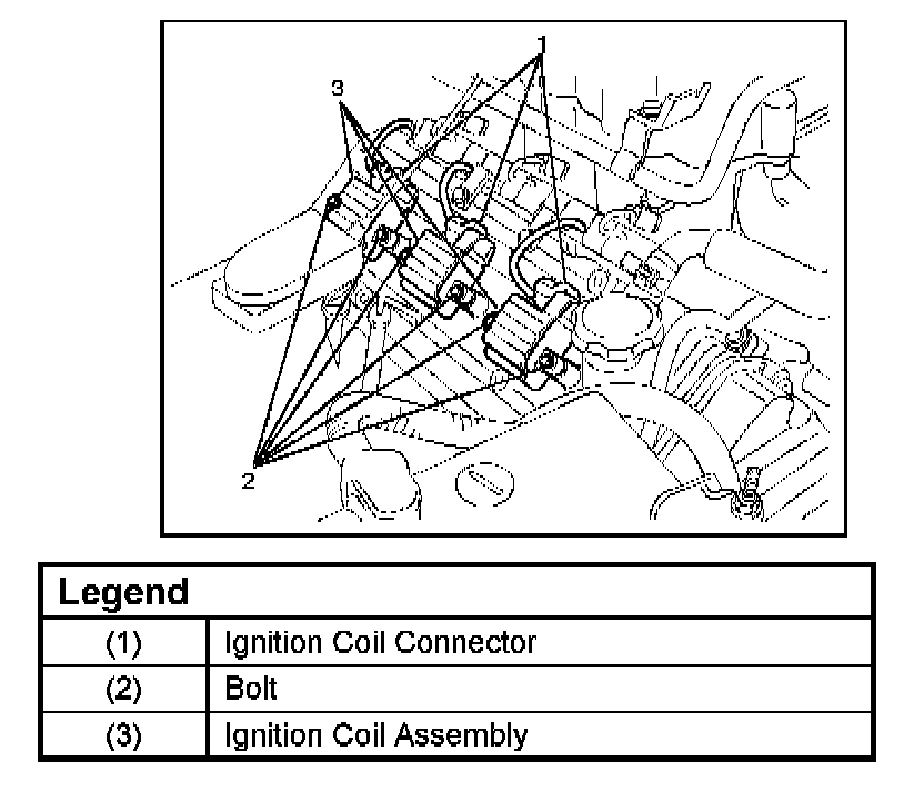Connect ignition coil connector (1) and ignition coil (3), then tighten bolt (2) to the specified torque.