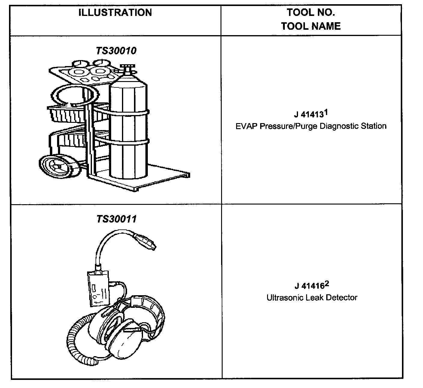 J 41413 EVAP Pressure/Purge Diagnostic Station is a multipurpose tool which is used to perform several diagnostic procedures for enhanced emission testing. The station will accommodate a nitrogen gas filled cylinder which is used to pressurize the vehicle EVAP system for a leakdown test and leak location test when a vehicle is repaired for leakage in the enhanced evaporative emission control system. It also has two additional gauges (inches of mercury and inches of water) which are used to measure both source vacuum and EVAP canister purge vacuum to verify correct operation and vapor flow within the canister purge circuit.