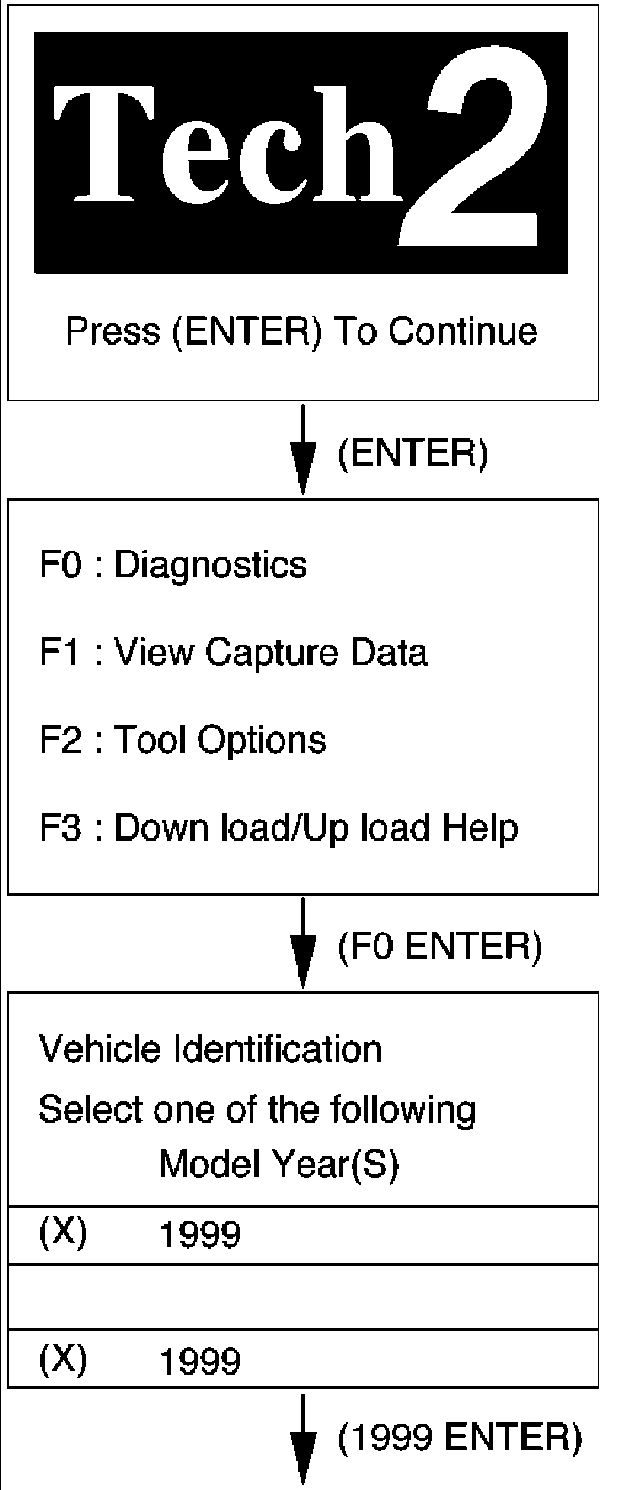 7 Verify the Tech 2 power up display.