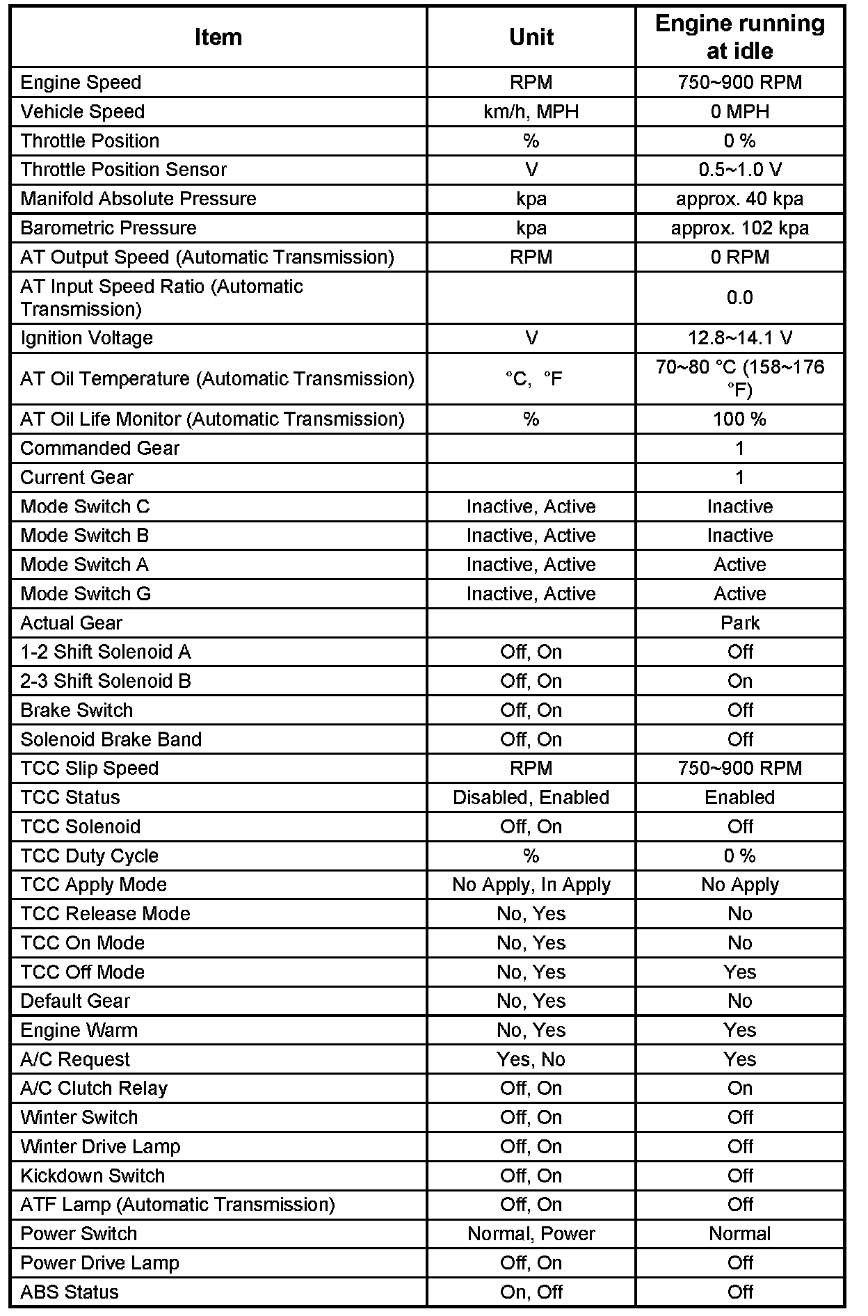 Please select either "Transmission Data" or "PC Solenoid Data".