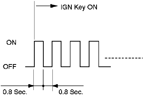 2. Indicator it is flashing and the flash is 0.8 seconds ON and 0.8 seconds OFF always when ignition is on (engine cranked or not).