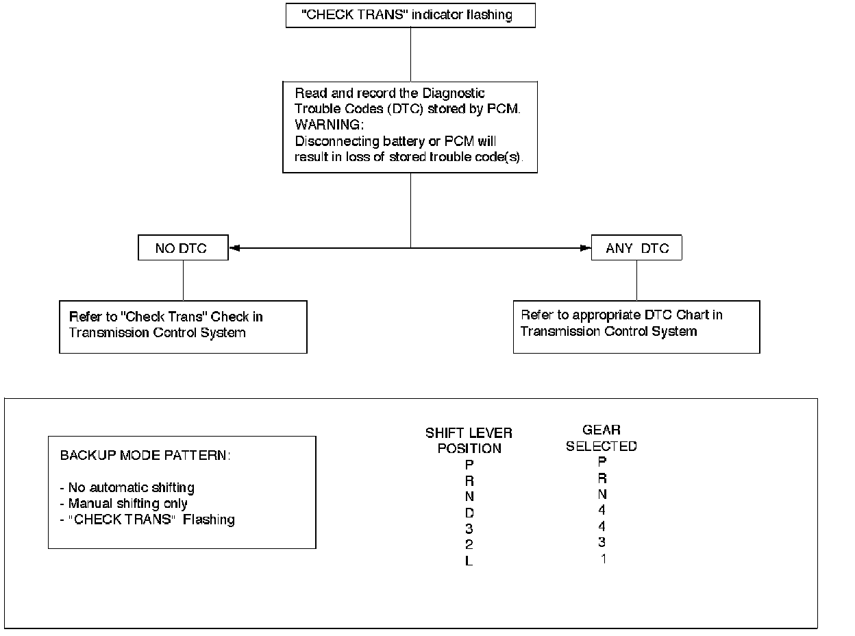 The system is now operating in a "BACKUP MODE" where the risk of further damaging the transmission has been reduced. The vehicle may be shifted manually.