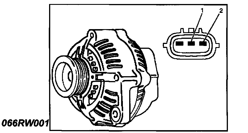 1. Disconnect the wiring connector from generator.2. With the engine stopped, turn starter switch to "ON" and connect a voltmeter between connector terminal L (2) and ground or between terminal IG (1) and ground.