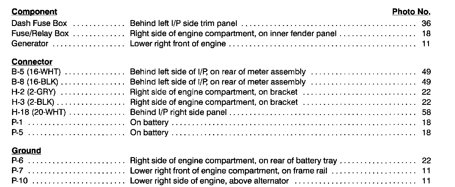Component Location Index photographs can be found at Component Locations.