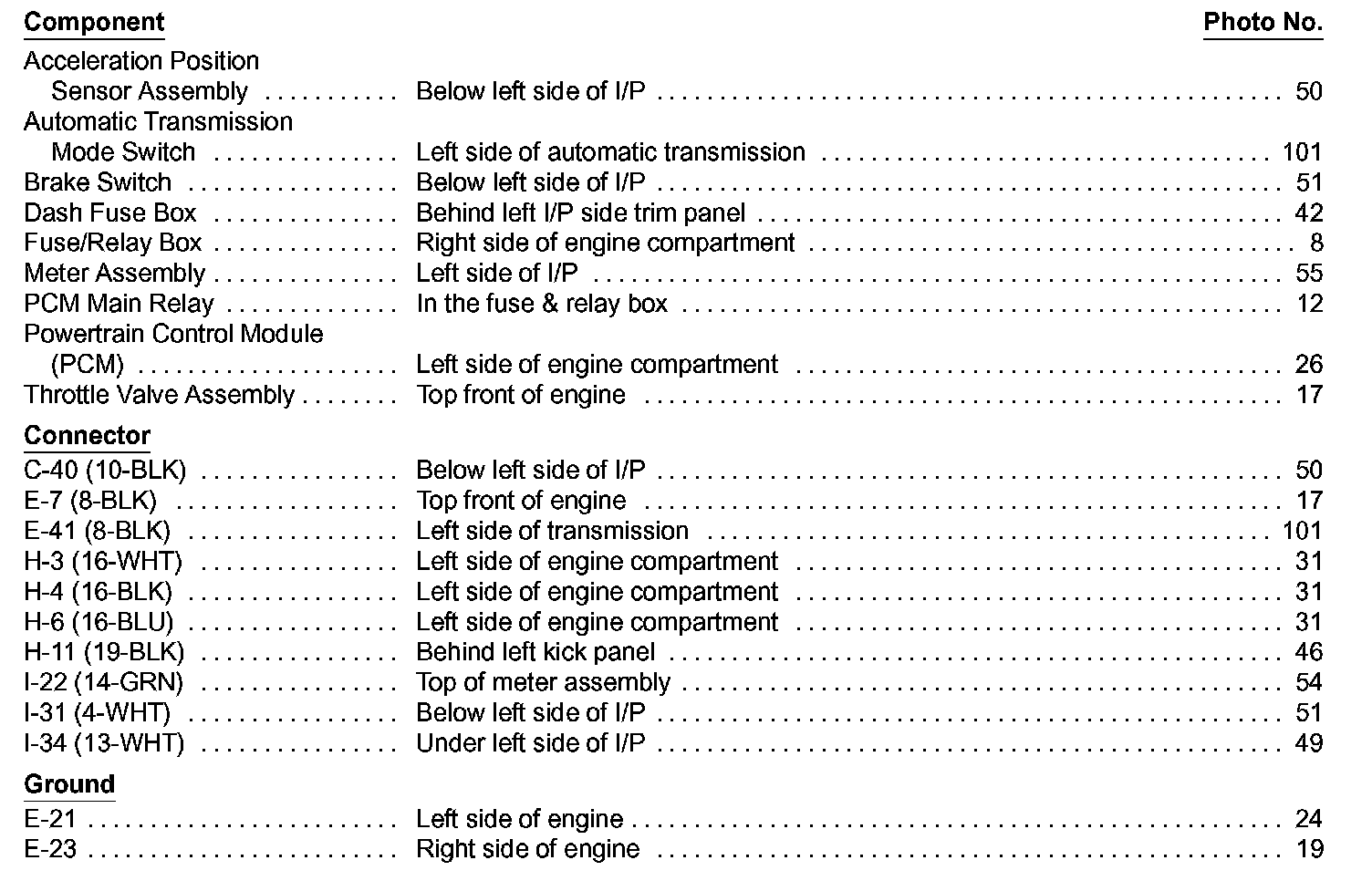 Component Location Index photographs can be found at Diagnosis and Repair/Location/Components