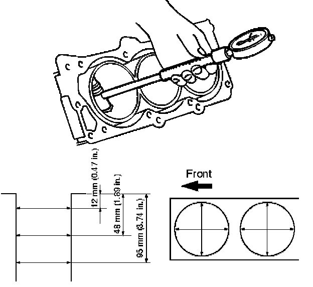 Use a cylinder gauge to measure the cylinder bore diameter in both the axial and thrust directions. Each measurement should be made at six points.