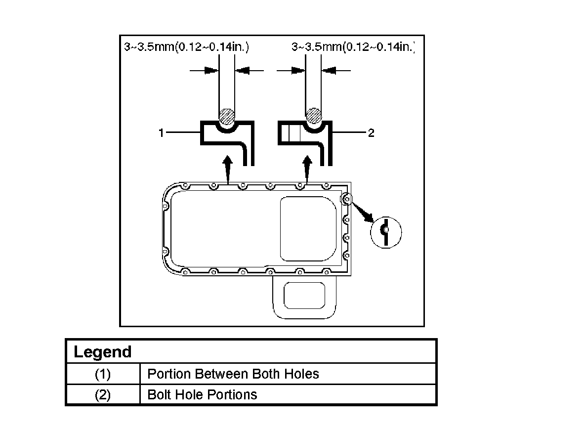 3. The oil pan must be installed within 5 minutes after sealant application to prevent premature hardening of sealant.
