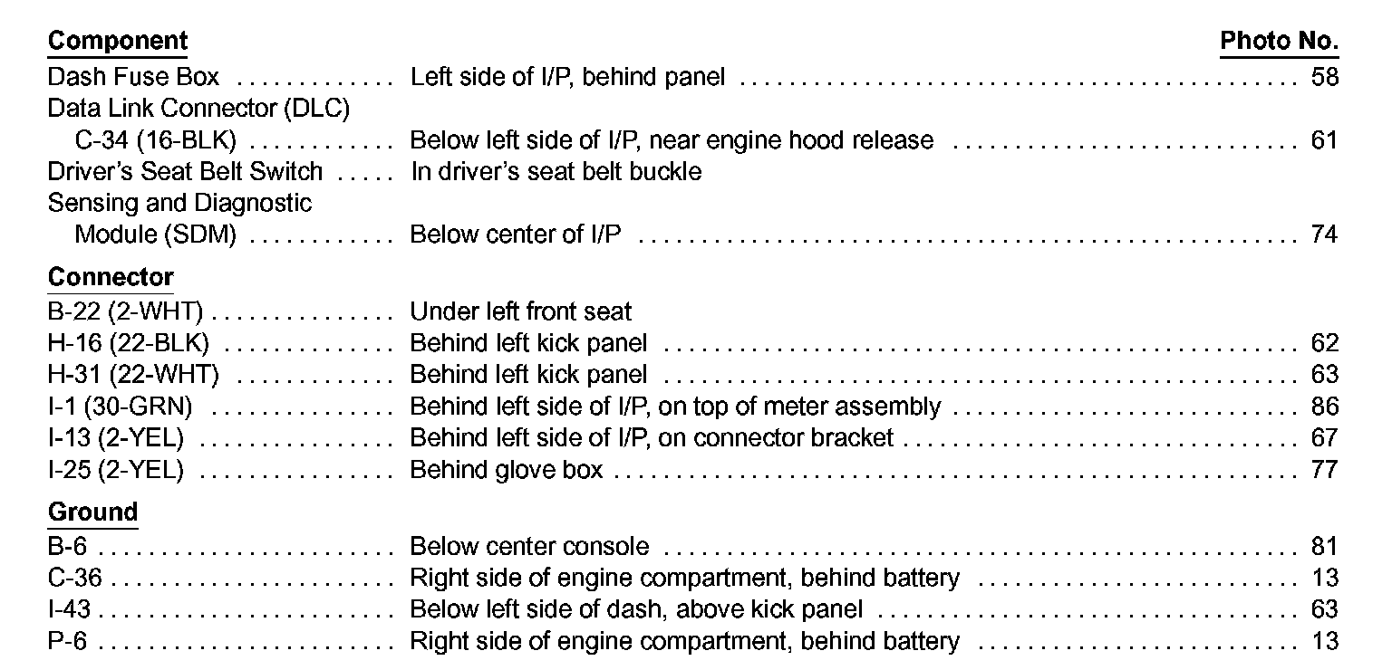Supplemental Restraint System (SRS) Index Image 47-1: