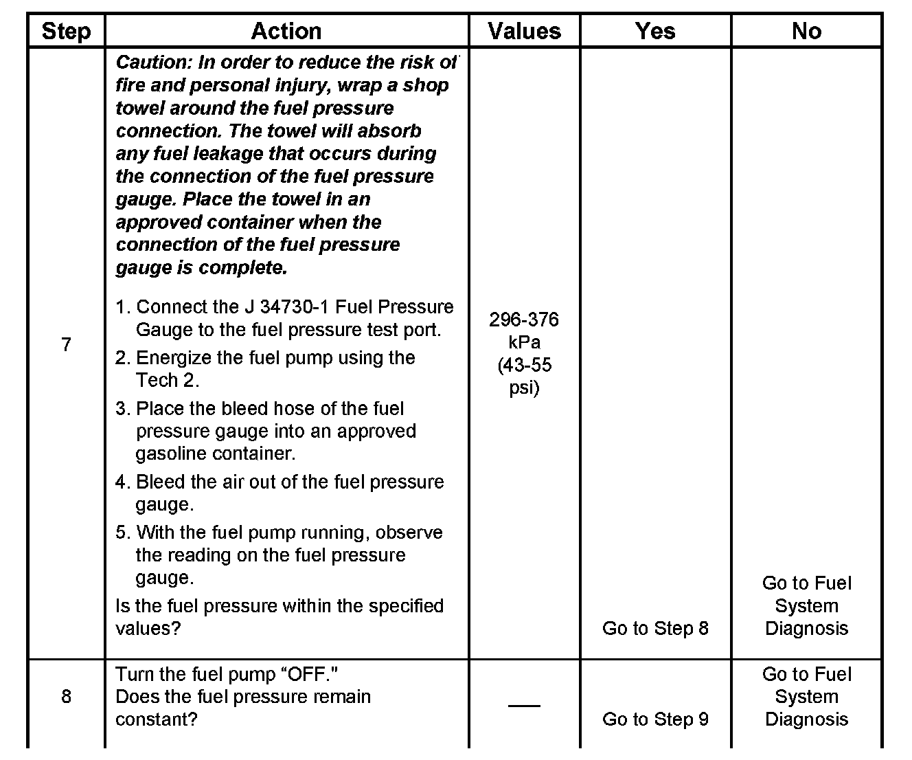 CAUTION: In order to reduce the risk of fire and personal injury, wrap a shop towel around the fuel pressure connection. The towel will absorb any fuel leakage that occurs during the connection of the fuel pressure gauge. Place the towel in an approved container when the connection of the fuel pressure gauge is complete.