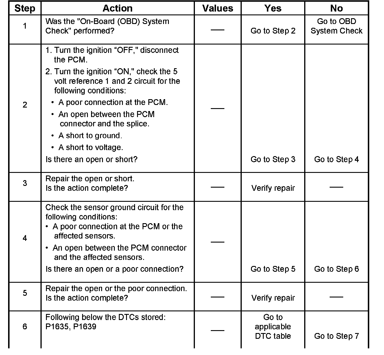 A short to ground in the 5-volt reference A or B circuit will cause one or more of the following DTCs to be set: