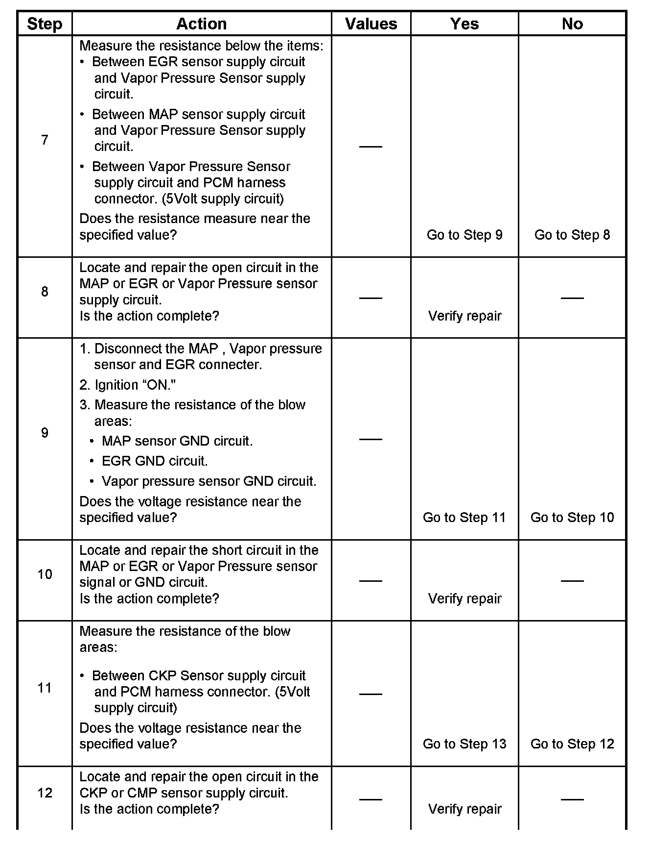 A short to voltage in one of the sensor input circuits may cause one or more of the following DTCs to be set: