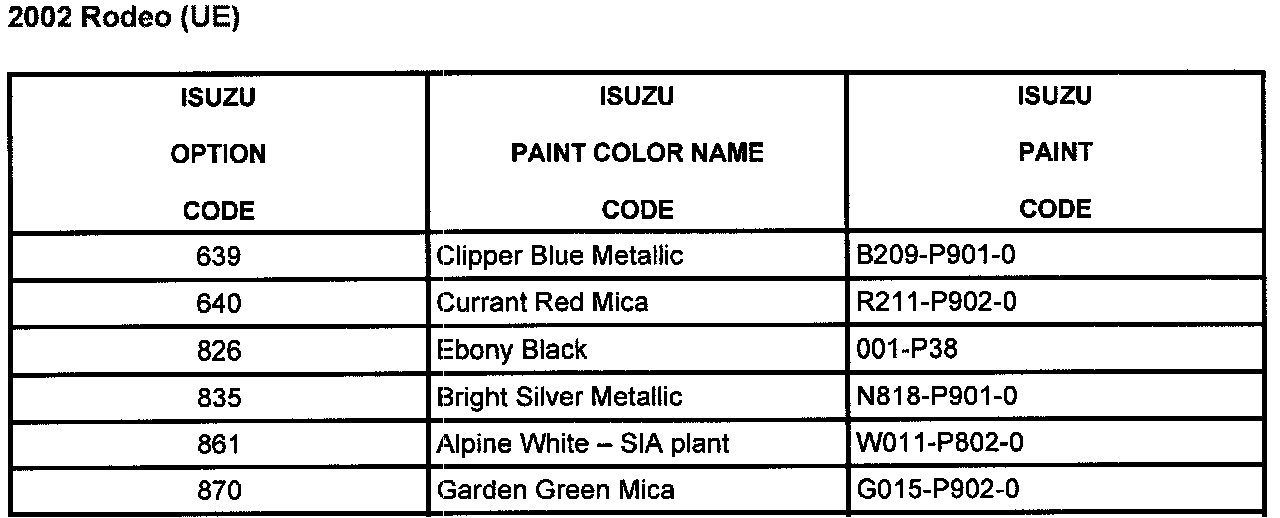 The 3-digit Isuzu option code is printed on the Service ID Information Plate (mounted under the hood), on the bulkhead at the rear of the engine compartment for all ISUZU models listed above.