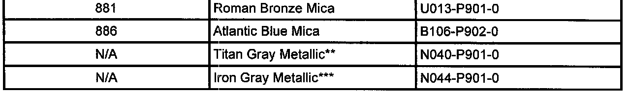 IMPORTANT ! Due to differences in manufacturing plants, be sure to specify the manufacturing plant when ordering paint The paint color name is the same, but the paint formula differs between assembly plants Check the VIN plate to verify where the vehicle was manufactured.