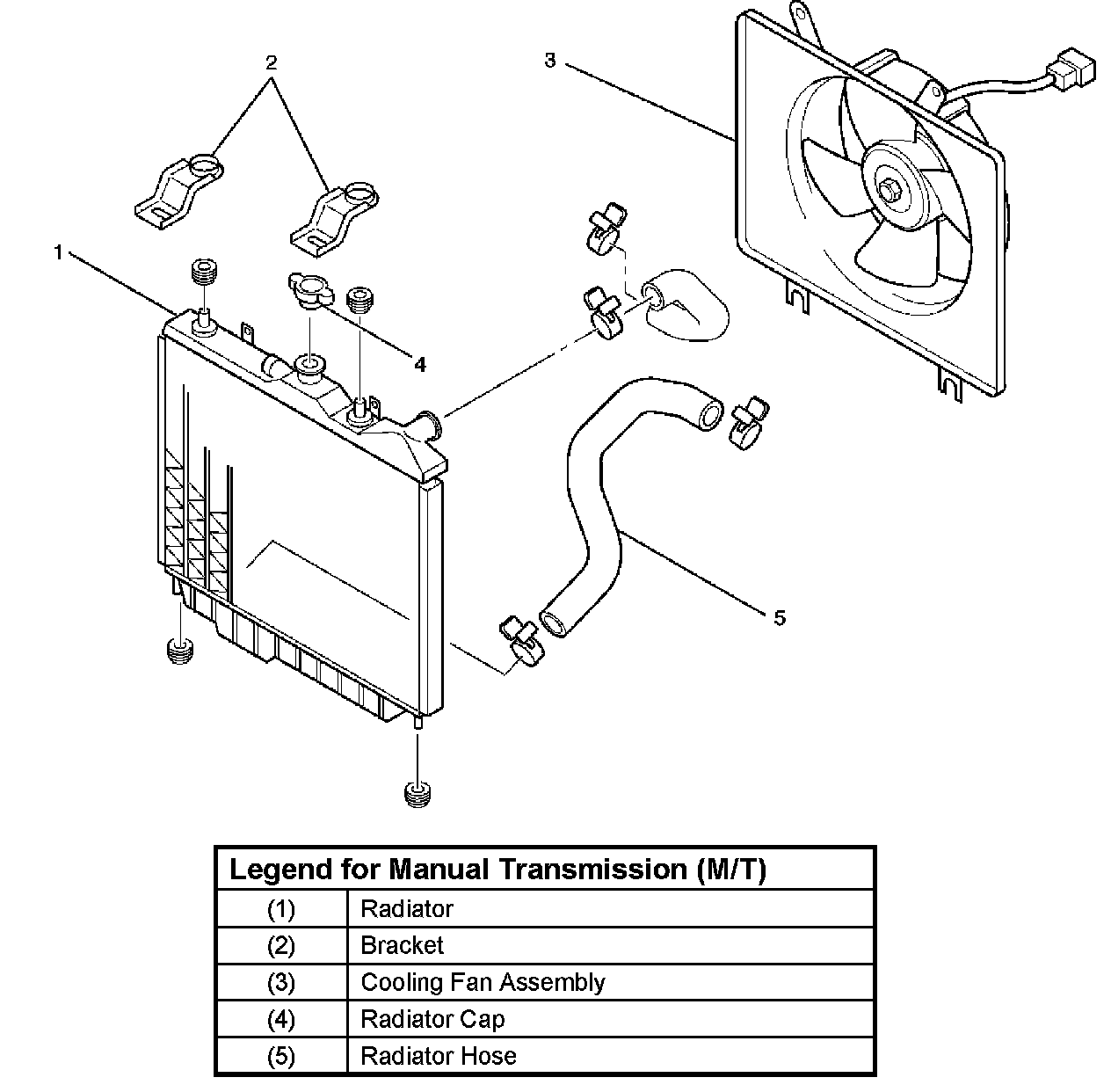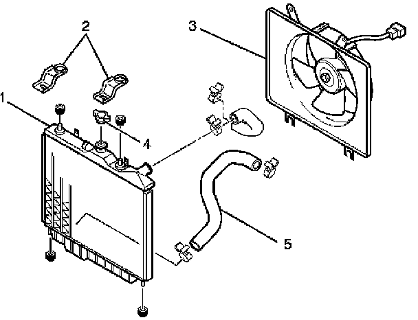 2. Install radiator assembly with hose, taking care not to damage the radiator core.