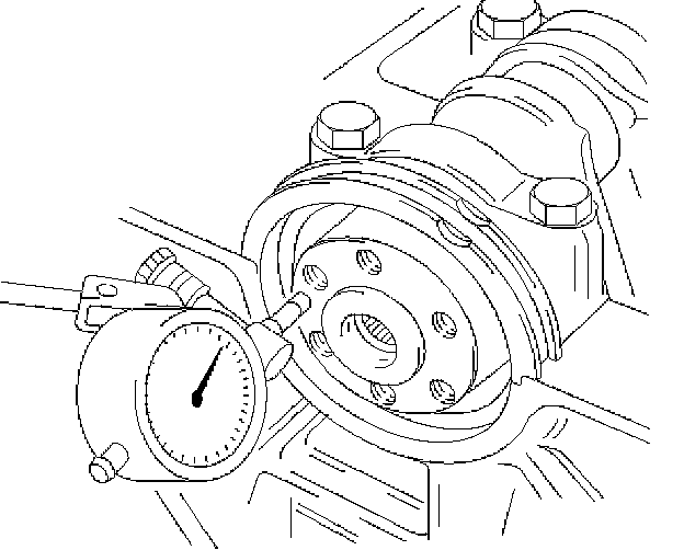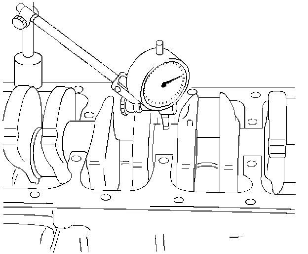 1. Carefully set the crankshaft. Slowly rotate the crankshaft and measure the runout. If the crankshaft runout exceeds the specified limit, the crankshaft must be replaced.
