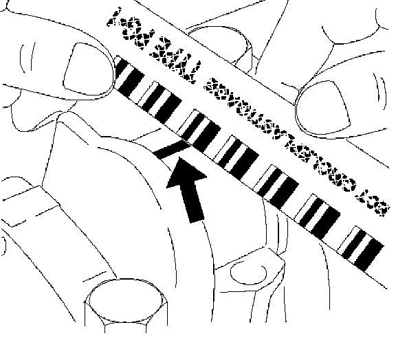 10. Measure the plastigage width and determine the oil clearance. If the oil clearance exceeds the specified limit, replace the main bearings as a set and/or replace the crankshaft.